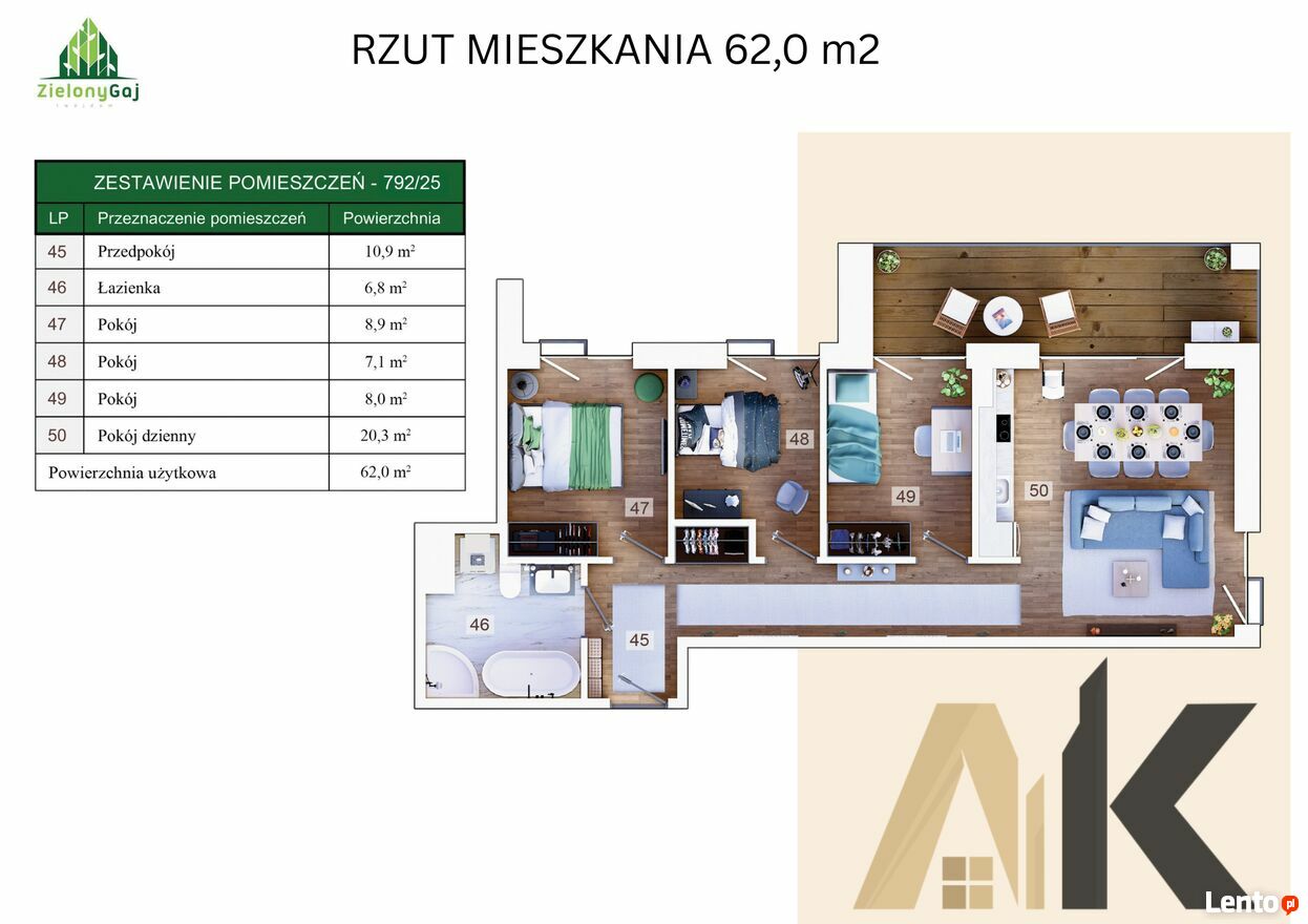 - Powierzchnia:57 m2